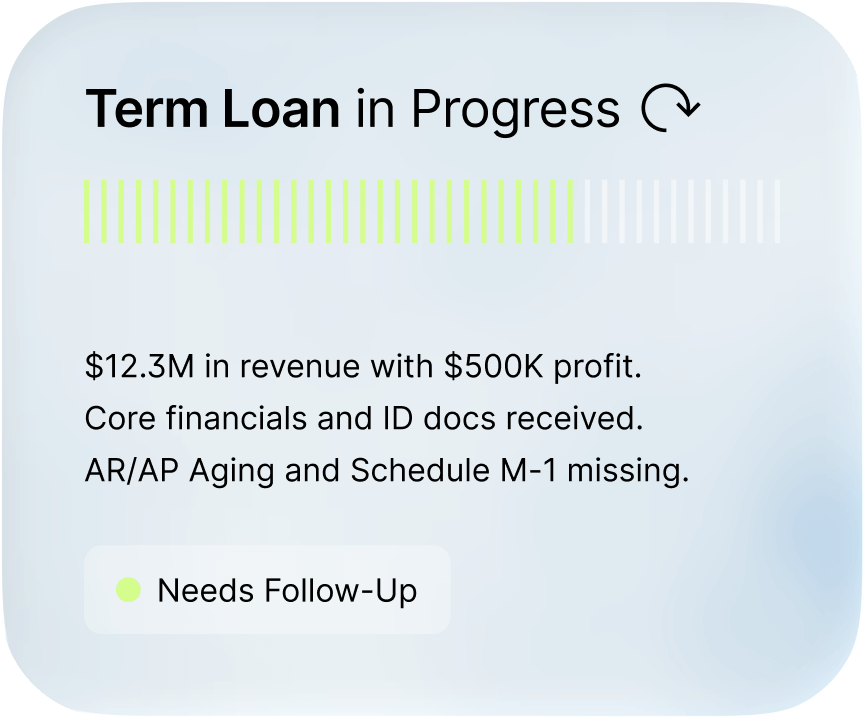 Turn manual work into clean data and sharper loan packages. Close more deals in less time.